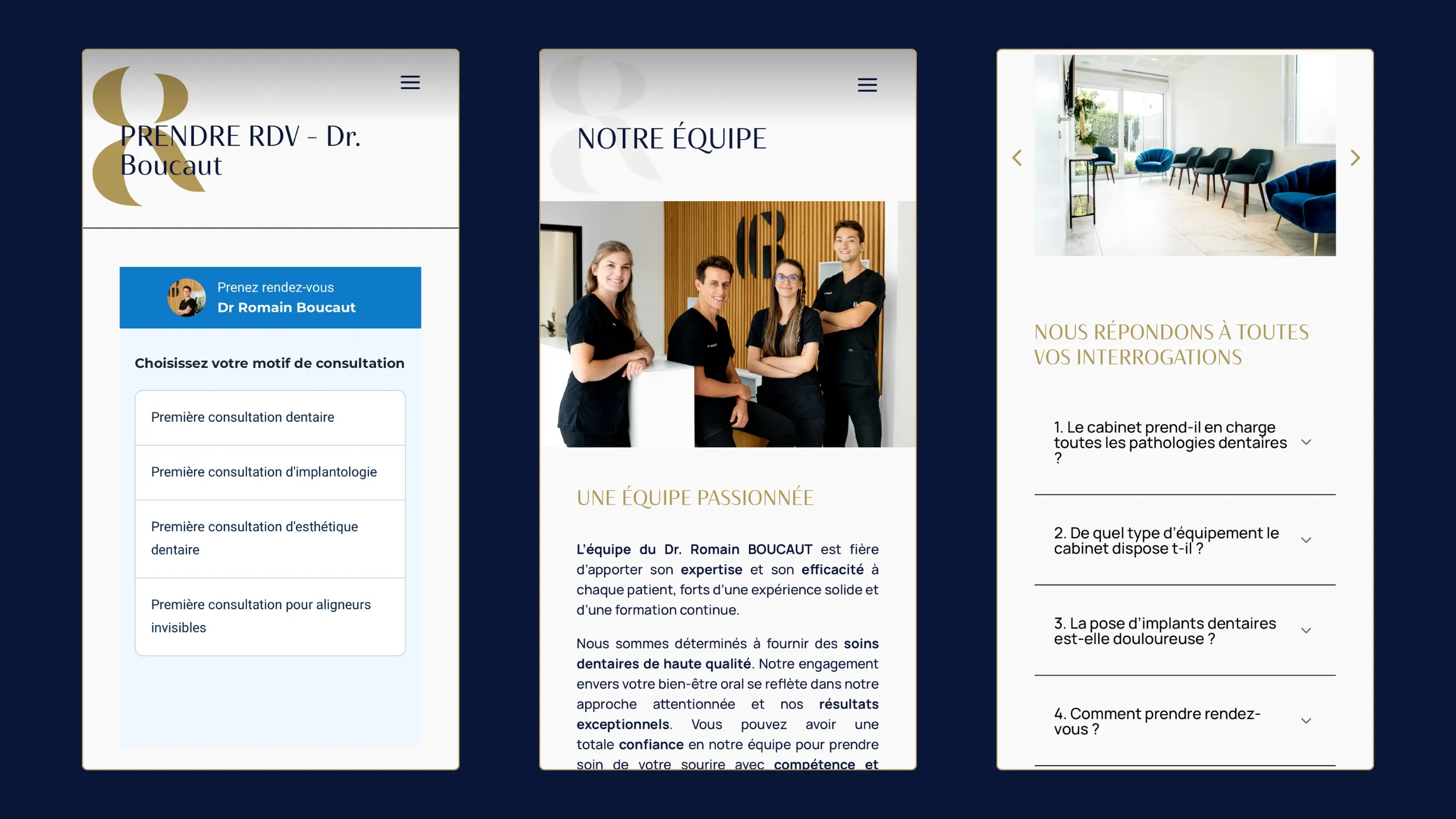 Chirurgien-dentiste et associé de son cabinet, le Dr Romain Boucaut souhaitait un site web capable de refléter le professionnalisme de son équipe tout en mettant en avant l’expertise de ses collaborateurs.